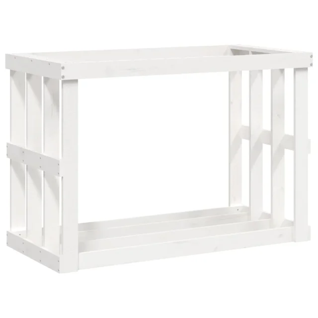 The Living Store Zunanje držalo za polena belo 108x52x74 cm trdna borovina - Zunanje Držalo Za Drva