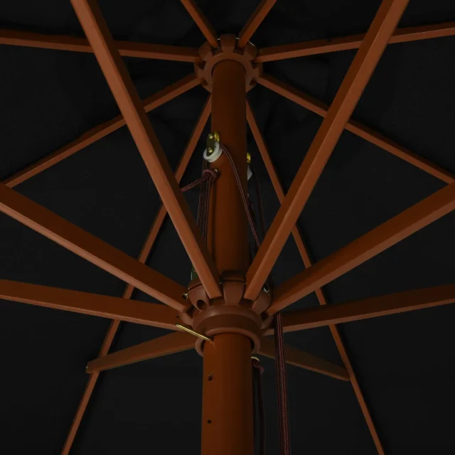 The Living Store Zunanji senčnik z lesenim drogom 330 cm črn - Senčnik