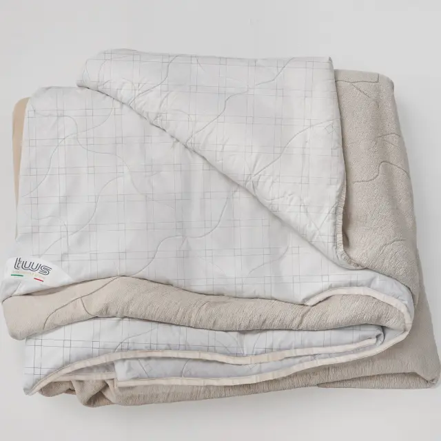 MEHKA DVOJNA PREPROGA. Dvojna preproga The White Stone iz ogljikovih vlaken ima mehko in toplo polnilo z mehko vato 80 g/m2, idealno za ogrevanje v hladnejših večerih. Preproga je z ene strani narejena iz plisiranega materiala v barvi vanilije, z druge strani pa iz posebnega mikrovlakennega materiala iz ogljikovih vlaken, ki je prešit in ima priznane blagodejne lastnosti, da zagotovi prave trenutke počitka in sprostitve. PREPROGA IZ OGLJIKOVIH VLAKEN. Preproga iz ogljikovih vlaken je znana po sposobnosti zmanjšanja elektrostatičnih nabojov, ki se lahko naberejo na našem telesu in povzročijo mišično otrplost ali občutek napetosti. Ogljikova vlakna so prav tako znana po antibakterijskih lastnostih in sposobnosti odvoda vlage: preprečujejo, da bi telo potilo med spanjem, hkrati pa preprečujejo širjenje škodljivih mikrobov in bakterij. PREPROGA PROTI STRESU. The White Stone je želel vključiti v svojo linijo preprogo iz ogljikovih vlaken predvsem zaradi njenih učinkov proti stresu. Z blokiranjem magnetnih polj preproga zagotavlja zdravo počitek, globlji spanec in na splošno boljši okolje za spanje. Uporaba ogljika v tkaninah prispeva k zmanjšanju stresa in napetosti ter izboljšanju zdravja in kakovosti življenja vsak dan. KAKOVOSTNO IN DOLGOTRAJNO TKANJE. Preproga The White Stone je narejena iz prijetnega in mehkega tkanja Plis z učinki proti stresu. Poleg tega je ta poseben material hipoalergen in ima lastnosti podobne naravni volni, ki uravnava in ohranja telesno temperaturo. Preprogo je enostavno prati v pralnem stroju do 40 stopinj; priporočljivo je, da jo posušite na zraku, izogibajte se sušilnim strojom ali ogrevalnim površinam. VARNA DOSTAVA IN NEPREKINJENA POMOČ. Preproga iz ogljikovih vlaken The White Stone je poslana zapakirana v priročni škatli, da optimizira prostor in zmanjša emisije CO2. Preprosto odprite paket in pustite, da izdelek počiva nekaj ur v prezračeni sobi. Za vsa vprašanja je naša služba za pomoč strankam vedno pripravljena nuditi vso potrebno pomoč, da zagotovimo najboljšo nakupovalno izkušnjo