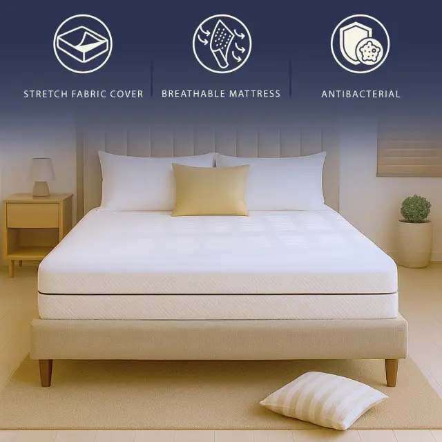 MEMORY WATERFOAM VZMETNICA. Vzmetnica je izdelana z notranjo strukturo iz hipoalergenega Memory Waterfoam najnovejše generacije, visoko elastične pene, brez škodljivih snovi in zelo zračne. Zahvaljujoč odprti celični strukturi zagotavlja odlično kroženje zraka in termalno udobje ter nudi ergonomsko podporo, ki se popolnoma prilagaja telesu v vsaki fazi počitka. ERGONOMSKA VZMETNICA. Notranja struktura iz visoko elastičnega Memory Waterfoam omogoča, da je vzmetnica ergonomska in se prilagaja oblikam telesa, kar spodbuja pravilno poravnavo hrbtenice. Z visoko trdnostjo, idealno za tiste, ki potrebujejo čvrsto podporo, zmanjša točke pritiska in izboljša kakovost spanja, zagotavlja trajno udobje in podporo. VZMETNICA ZA VSE POTREBE. Na voljo v različnih višinah — 14, 16, 18 in 20 cm — se ta vzmetnica prilagaja vsaki potrebi po počitku. Popolna za B&B, hotele, otroške sobe in domove, nudi maksimalno udobje in podporo ne glede na razpoložljiv prostor. CERTIFICIRANI MATERIALI. Izdelana iz certificiranih in varnih materialov, zagotavlja hipoalergen, antibakterijski in zelo zračen prostor za spanje. Visokokakovostna stretch prevleka ohranja svežino in higieno skozi čas, je nežna do kože in odporna proti obrabi. Vsi sestavni deli so zasnovani za največjo varnost in kakovost pri vsakodnevnem počitku. NAMESTITEV IN VZDRŽEVANJE. Naše vzmetnice so dostavljene zvite in vakuumsko pakirane za lažji transport; po odprtju jih je potrebno pustiti nekaj ur, da vzmetnica pridobi prvotno obliko. Dolga življenjska doba je zagotovljena s preprosto vzdrževanjem: priporočljivo je redno obračanje glava-noge in prevračanje zgoraj-spodaj. Ker prevleka ni snemljiva, se vzmetnico enostavno očisti z vlažno krpo brez agresivnih čistil.