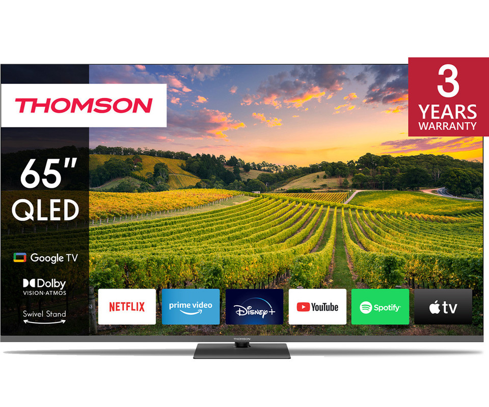 Doživite tekoče slike in visoko odzivnost v bogati kakovosti 4K UHD s Thomson Google TV 65" QLED.