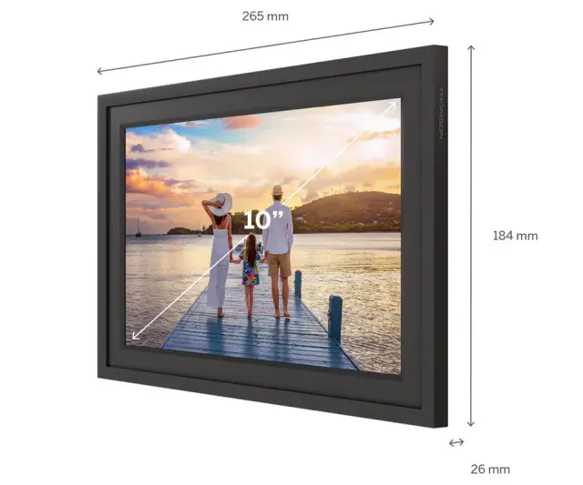 THOMSON F10 Smart Photo Frame je pameten digitalni okvir, ki omogoča preprost in eleganten prikaz vaših fotografij in videoposnetkov. Z modernim dizajnom in naprednimi funkcijami se odlično poda v vsak prostor – dnevno sobo, spalnico ali pisarno. Namenjen je vsem, ki želijo svoje spomine ohraniti žive in jih deliti z bližnjimi na sodoben način.