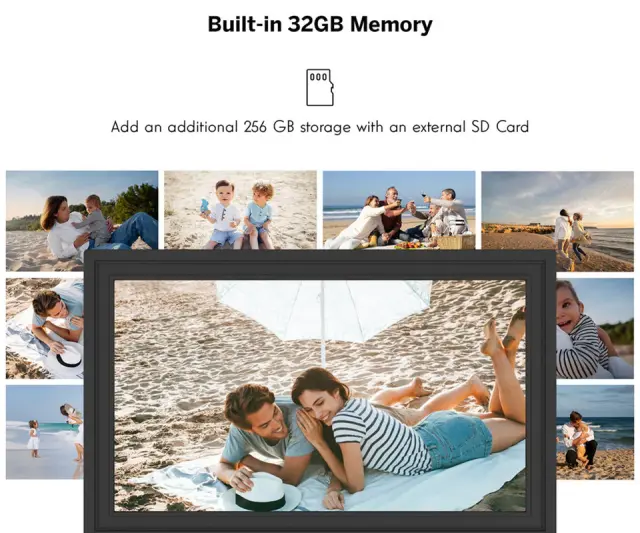 Okvir ima 32 GB notranjega pomnilnika, ki omogoča shranjevanje velike količine fotografij. Pomnilnik je mogoče razširiti s kartico microSD ali USB ključkom do 256 GB.