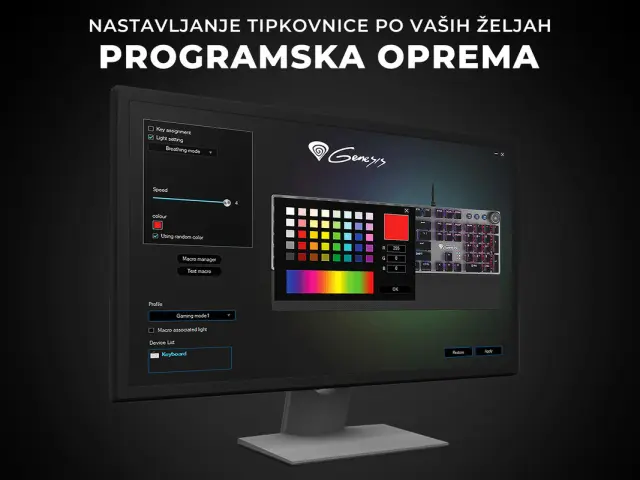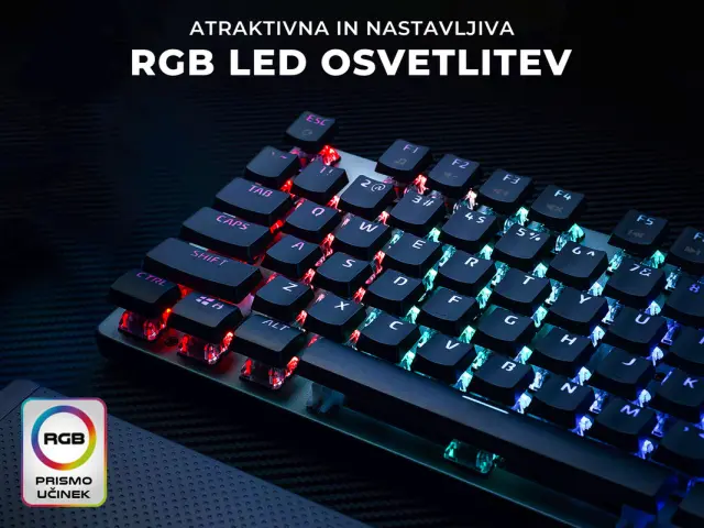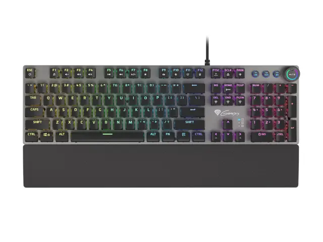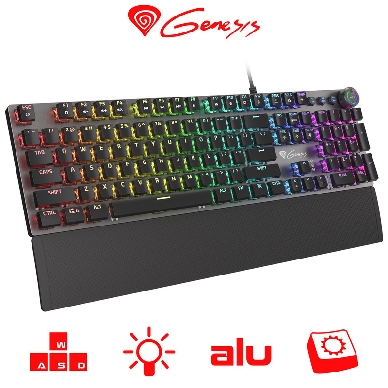 Ambicioznem igralcem je na voljo izjemna žična gaming tipkovnica Genesis Thor 400 RGB s privlačnim videzom, snemljivim magnetnim naslonom za zapestja in atraktivno RGB osvetlitvijo s 13 različnimi načini osvetlitve ozadja, med katerimi je tudi priljubljen PRISMO svetlobni efekt gibljive mavrice. RGB osvetlitev z namensko programsko opremo omogoča barvno kalibracijo po lastnih željah, nastavljanje profilov in makrov in popoln nadzor nad tipkovnico po izključno vaših željah!