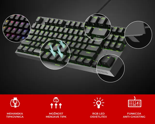 GENESIS THOR 404 TKL črna gaming tipkovnica, mehanska