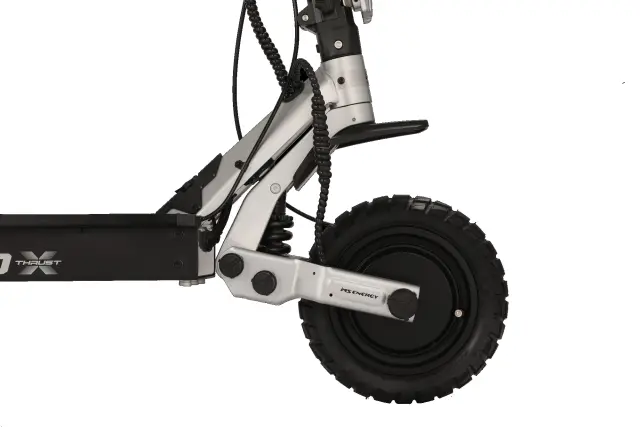 Kolesa: 10" pnevmatike. Blaženje: sprednje vzmetenje Večja kolesa izboljšajo stabilnost in omogočajo bolj gladko vožnjo tudi na slabših površinah, kot so tlakovci ali mestne neravnine.