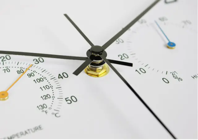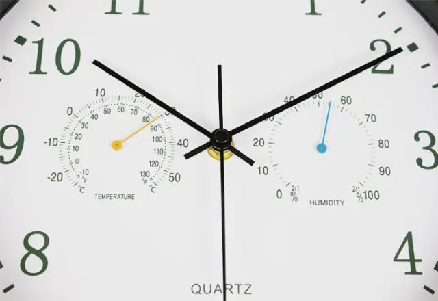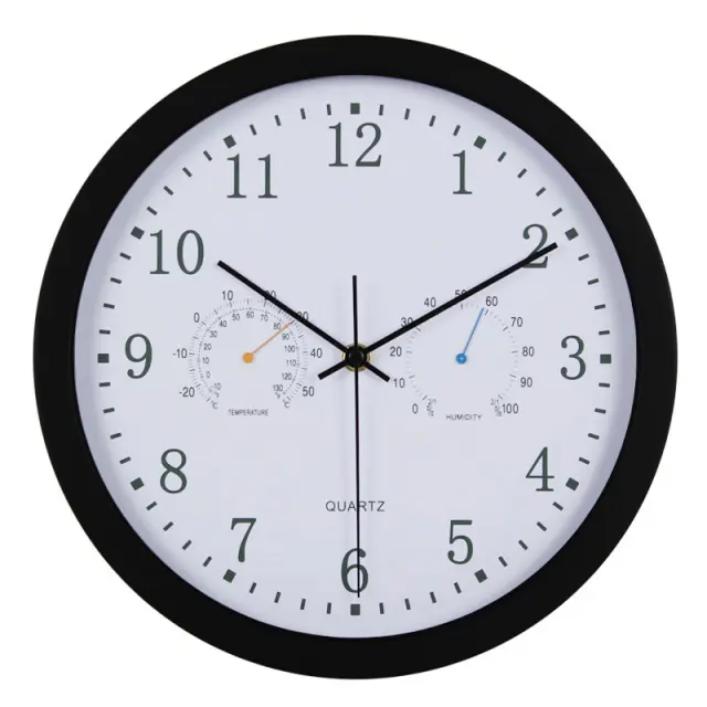 Večnamenska stenska ura, ki prikazuje tudi temperaturo in vlažnost. Ura deluje tiho, tako da vas ne moti nobeno tiktakanje. Izdelan iz visokokakovostnih materialov in primeren tako za zasebno kot profesionalno uporabo.