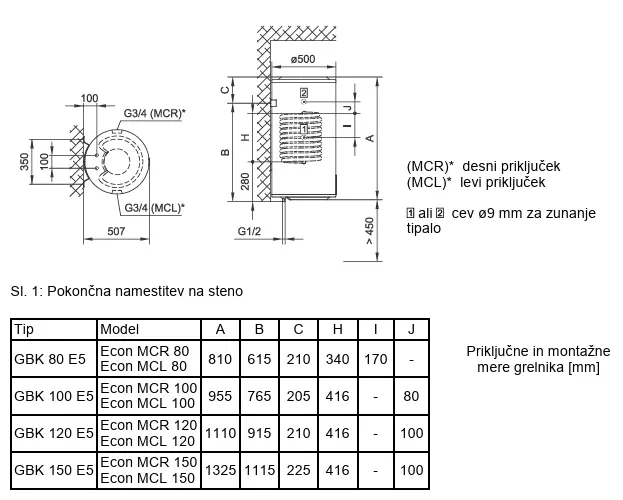 Tehnične podrobnosti o TIKI Grelniku vode / bojlerju Econ MCL 120 / GBK120E5