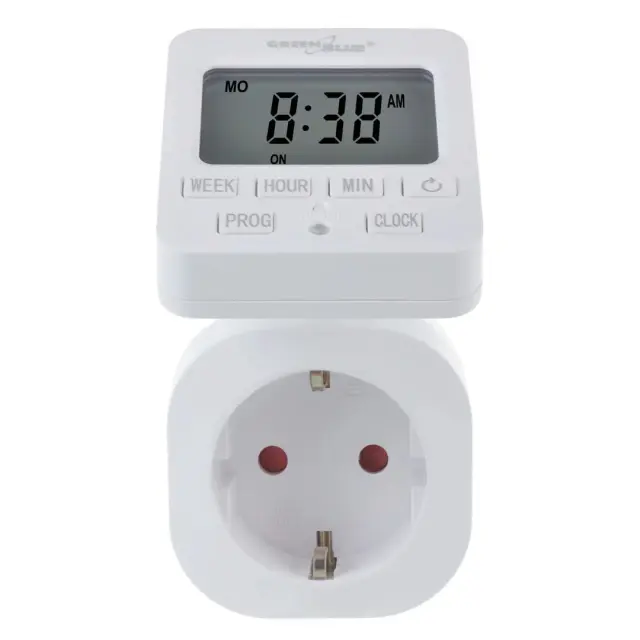 Timer digitalni GREENBLUE GB605F, 18prog., 16A, 3680W, IP20, LCD, bel