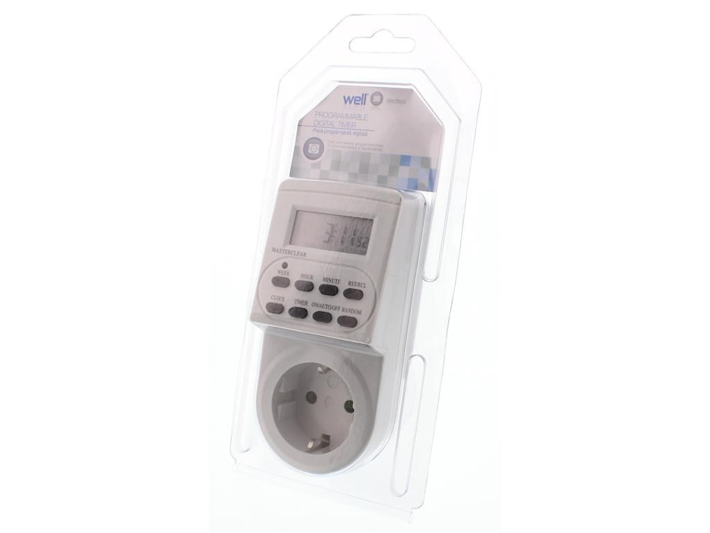 Timer digitalni WELL, 24H, 16A, 3500W, IP20, bela barva