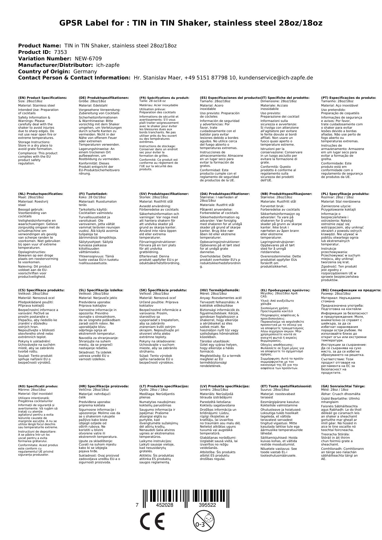 Podatki o proizvajalcu vključujejo informacije (naziv, naslov, državo in elektronski naslov) povezane s proizvajalcem izdelka.