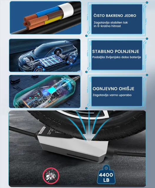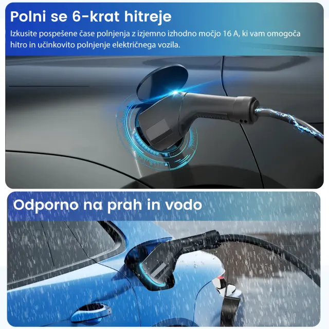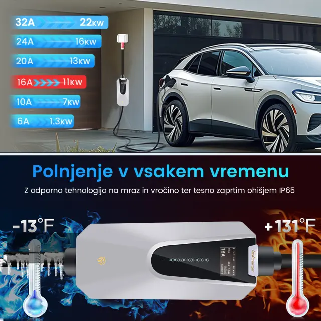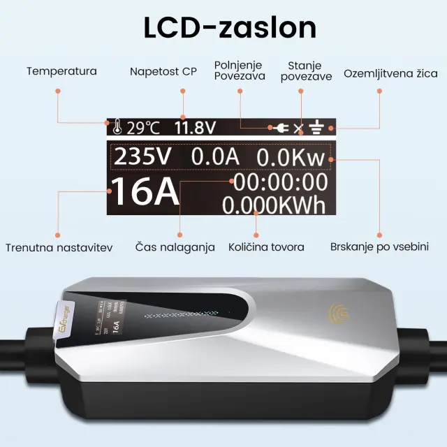 tip 2 EV električni avtomobilski polnilni kabel – 11 kW, nastavljiv tok, LCD zaslon, prenosni polnilnik 6 m z vtičem Schuko 6-16A IP67 APP