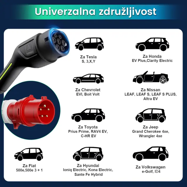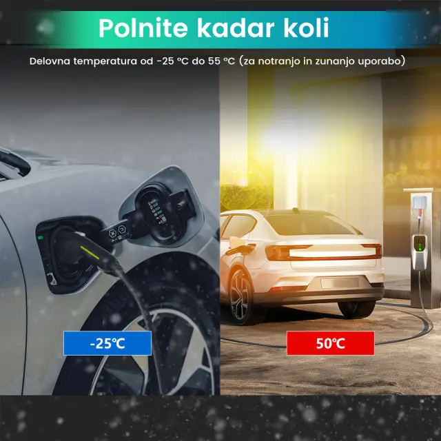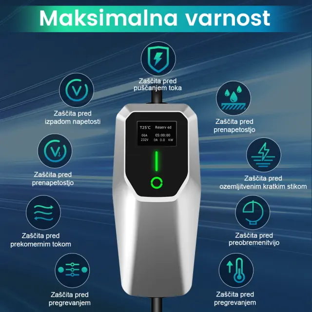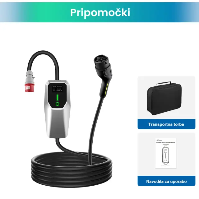 Tip 2 EV električni avtomobilski polnilni kabel – 22kW, nastavljiv tok, LCD zaslon, prenosni polnilnik 4 m z vtičem Schuko 6-32A IP67