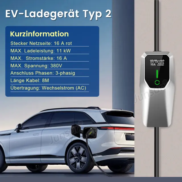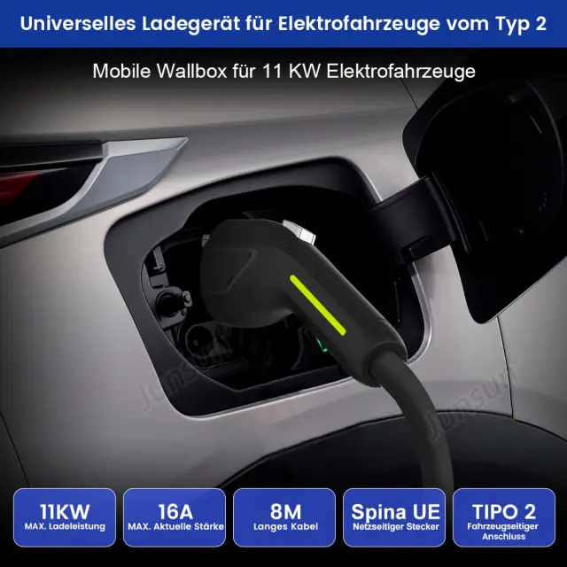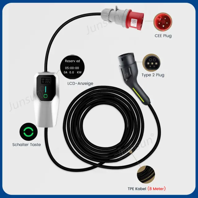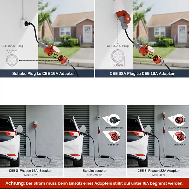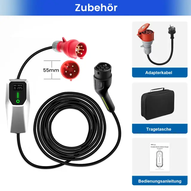 Tip 2 EV Polnilni Kabel za Električna Vozila – 3-Fazni 11KW, Nastavljiv Tok, Prenosni Polnilec 8M s CEE16A Vtičnico in Torbico (6-16A)+napajalnik