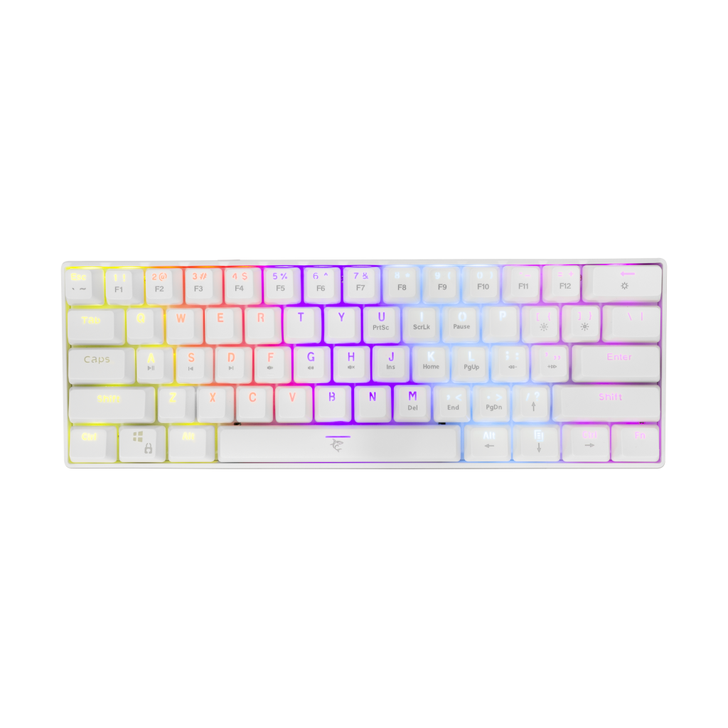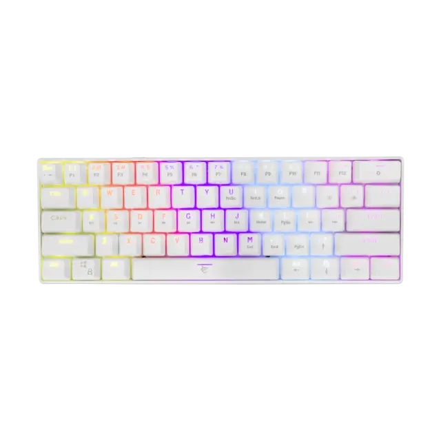 Število tipk: 61 Razporeditev tipk: Kompaktno Vrsta stikala: Mehansko - OUTEMU (modra) Življenjska doba: Več kot 50 M pritiska Pritisk tipk: 60 g +/- 15 g Razdalja premikanja tipk: 4 mm +/- 0,5 mm Anti-Ghosting: 61 tipk Osvetlitev: LED - učinek mavrice Barva: Bela Material: Plastika Vmesnik: Tip C > USB 2.0 (snemljiv) Dodatne dvižne noge: Da Dolžina kabla (m): 1,8 Pleten kabel: Da Razpoložljive postavitve: US/HR/SRB/HU/NORDIC Dimenzije (mm): 291x101x39 Teža (g): 556 +/- 20g Ostalo: Odzivni čas - 8 milisekund