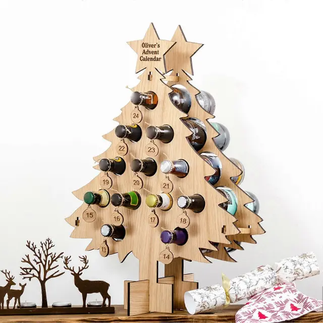 Tipsy leseni božični adventni koledar za 24 steklenic - držalo za steklenice vina Božično odštevalno drevo stojalo za vino