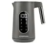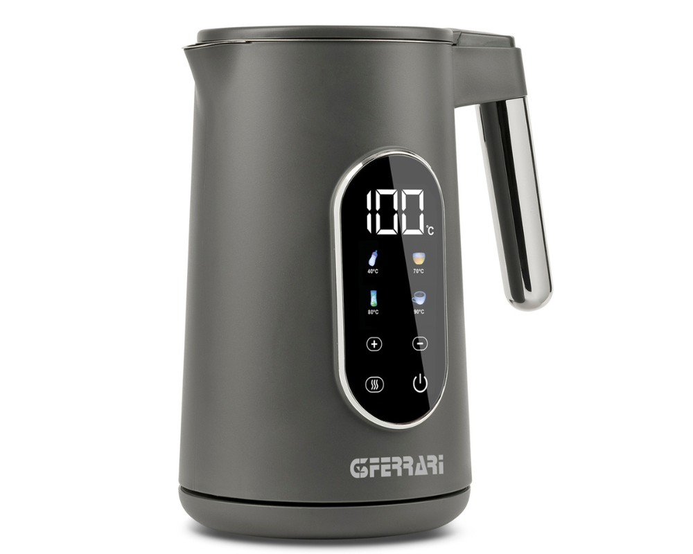 Zaradi elegantne in sodobne oblike ga lahko brez težav pustimo na kuhinjskem pultu. Opremljen je z elektronskim nadzorom temperature in nastavljivo temperaturo, zato lahko vodo v nekaj minutah zavre ali jo segreje na temperaturo, ki je idealna za zeliščni čaj. Zaslon med segrevanjem prikazuje trenutno temperaturo vode. Na voljo je tudi funkcija ohranjanja toplote.