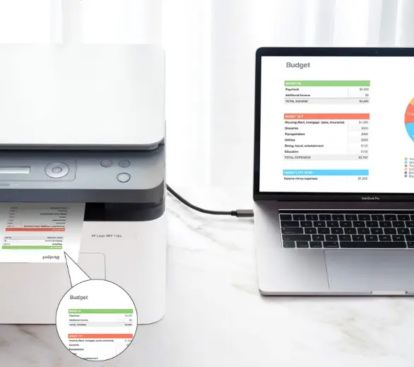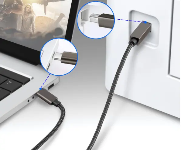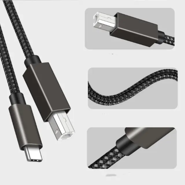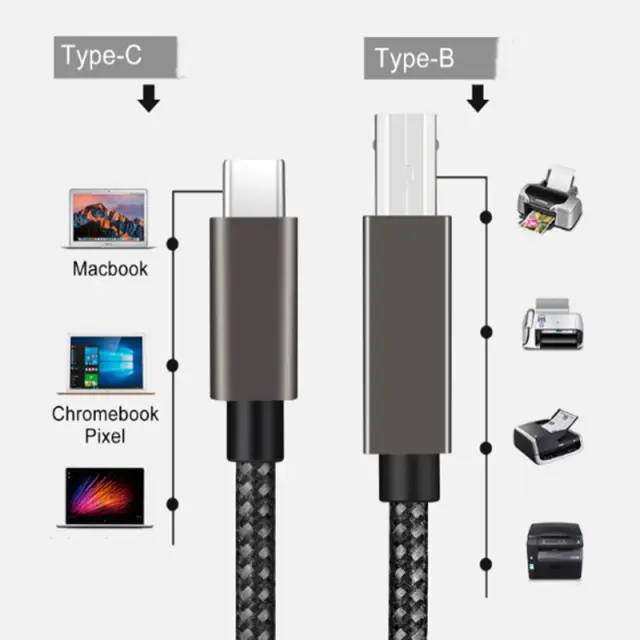 Tiskalniški kabel USB-B s priključkom USB-C za povezavo optičnega bralnika, tiskalnika, strežnika itd. na prenosni računalnik ali drugo napravo z vtičnico USB-C. Vzdržljiv kabel za tiskalnik, za hitro tiskanje v naravnih barvah in brez popačenj.