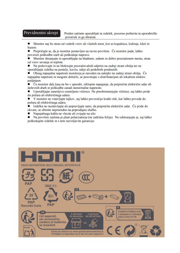 Slike o varnosti izdelka vsebujejo opozorila na embalaži izdelka in lahko vključujejo ključne varnostne informacije, povezane z določenim izdelkom.