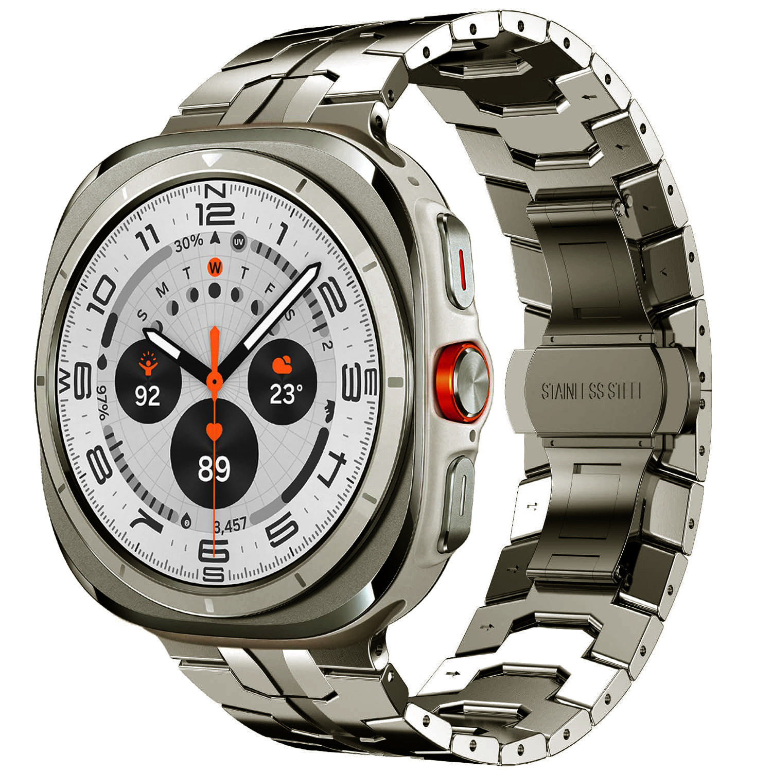 Vrhunski titanski zaključek: Izboljšajte videz svoje Samsung Watch 7 Ultra s tem elegantnim titanskim paščkom. Elegantna srebrno-črna barva izžarja prefinjenost in dopolnjuje sodoben dizajn ure, zaradi česar je popoln dodatek tako za priložnosti kot za vsakodnevno uporabo.