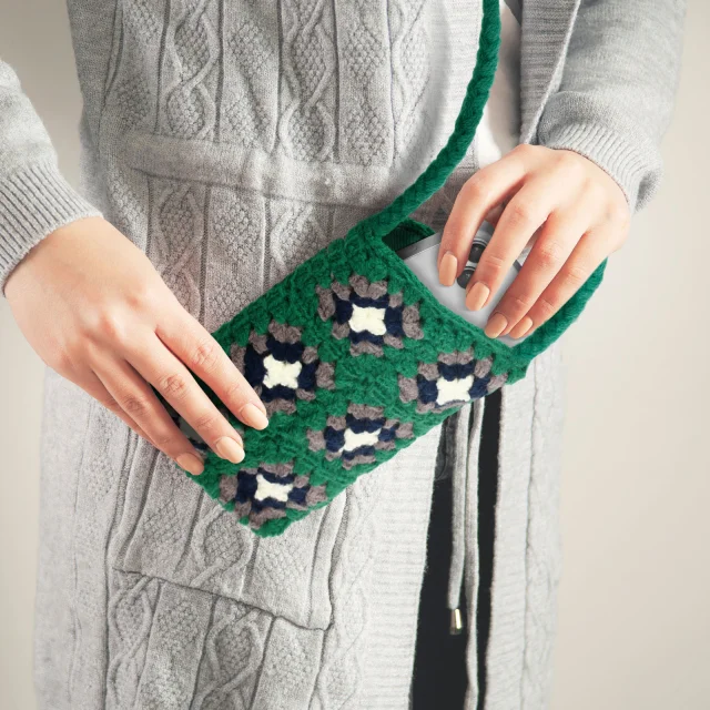 Tkana naramna torba za pametni telefon, serija SquareWeave - zelena