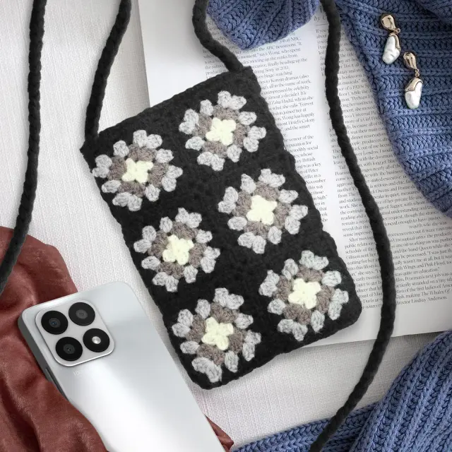 Tkana torba za cez ramo za pametni telefon, serija SquareWeave - crna