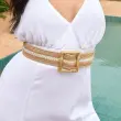 Vsestranski poletni dodatek: Ta pleteni pas je popoln poletni dodatek za dopolnitev vašega videza. Ne glede na to, ali se urejate za posebno priložnost ali dodajate pridih svoji vsakdanji obleki, je ta pas za okoli pasu vsestranska izbira. Zasnova pasu s kvadratno zaponko doda sodoben pridih klasičnemu boemskemu stilu, zaradi česar je primeren za različne obleke. Kombinirajte ga s svojimi najljubšimi poletnimi oblekami, krili ali hlačami z visokim pasom za eleganten in preprost videz. Lahka zasnova zagotavlja udobje tudi v toplem vremenu.
