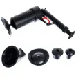 Zahvaljujoč tej edinstveni napravi boste enkrat za vselej pozabili na težave, povezane z zamašenimi cevmi ali odtoki. Odmaševalec cevi pod pritiskom je pripomoček, ki vam omogoča, da s pomočjo zraka odmašite morebitna zamašena mesta v vašem domu. Komplet vsebuje pištolo iz kakovostne plastike in kar 4 nastavke različnih oblik, ki se bodo prilagodili odtokom v WC školjki, umivalniku, umivalniku, tuš kabini ali kadi. Ni se vam treba obremenjevati s standardnimi bati, polnimi bakterij in okolju škodljivih jedkih detergentov.