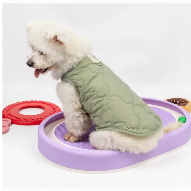 Odvajanje vlage in hitro sušenje: Zimski telovnik za hišne ljubljenčke ima lastnosti odvajanja vlage in hitrega sušenja, kar zagotavlja, da vaš ljubljenček ostane suh in udoben tudi med aktivno igro. Mešanica najlona in poliestra učinkovito absorbira vlago, preprečuje, da bi se vaš ljubljenček počutil vlažno ali ohlajeno. Ta funkcija je še posebej koristna za hišne ljubljenčke, ki uživajo v aktivnostih na prostem ali se zlahka potijo. Hitro sušeča narava materialov omogoča, da se jakna hitro posuši po izpostavljenosti vlagi, pri čemer ohranja svojo toploto in udobje. Ta bombažna jakna za pse je zasnovana tako, da vaš ljubljenček ostane svež in suh, zaradi česar je odlična izbira za celodnevno nošenje. Zračna tkanina spodbuja kroženje zraka, kar dodatno povečuje udobje vašega ljubljenčka in preprečuje pregrevanje. Ta toplotna jakna za hišne ljubljenčke je popolna za ohranjanje dobrega počutja vašega ljubljenčka v različnih vremenskih razmerah.