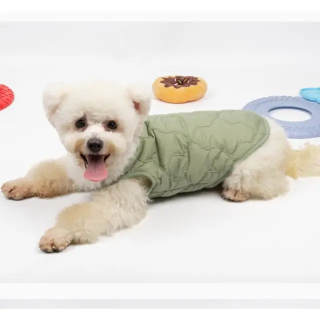 Odvajanje vlage in hitro sušenje: Zimski telovnik za hišne ljubljenčke ima lastnosti odvajanja vlage in hitrega sušenja, kar zagotavlja, da vaš ljubljenček ostane suh in udoben tudi med aktivno igro. Mešanica najlona in poliestra učinkovito absorbira vlago, preprečuje, da bi se vaš ljubljenček počutil vlažno ali ohlajeno. Ta funkcija je še posebej koristna za hišne ljubljenčke, ki uživajo v aktivnostih na prostem ali se zlahka potijo. Hitro sušeča narava materialov omogoča, da se jakna hitro posuši po izpostavljenosti vlagi, pri čemer ohranja svojo toploto in udobje. Ta bombažna jakna za pse je zasnovana tako, da vaš ljubljenček ostane svež in suh, zaradi česar je odlična izbira za celodnevno nošenje. Zračna tkanina spodbuja kroženje zraka, kar dodatno povečuje udobje vašega ljubljenčka in preprečuje pregrevanje. Ta toplotna jakna za hišne ljubljenčke je popolna za ohranjanje dobrega počutja vašega ljubljenčka v različnih vremenskih razmerah.