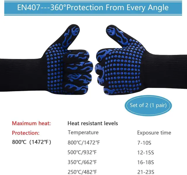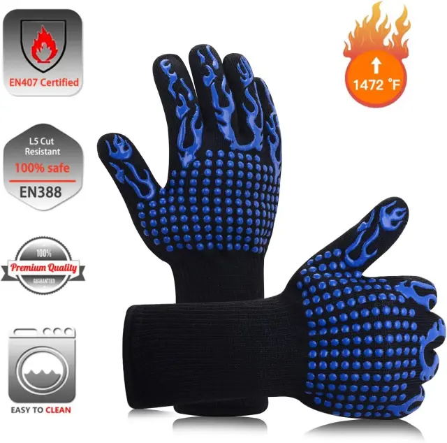 ?Izjemna toplotna odpornost do 800°C - Rokavice so vsestranske zaradi svoje visoke toplotne odpornosti. Pri kuhanju, Za v pečico in kamin. Brez nelagodja lahko rokujete z zelo vročimi pokrovi gorilnika in tudi z zelo vročim gorilnikom na drva z ročajem.