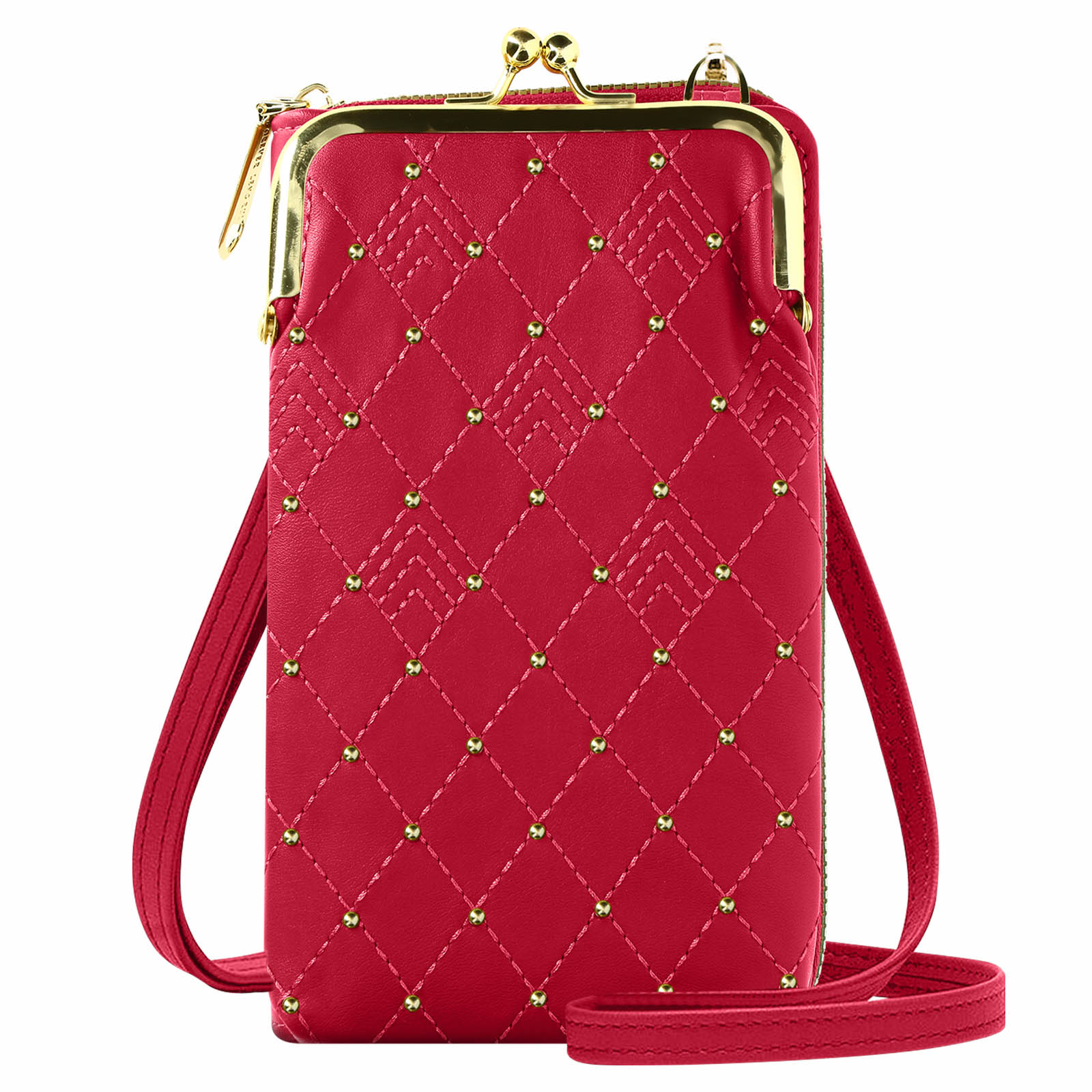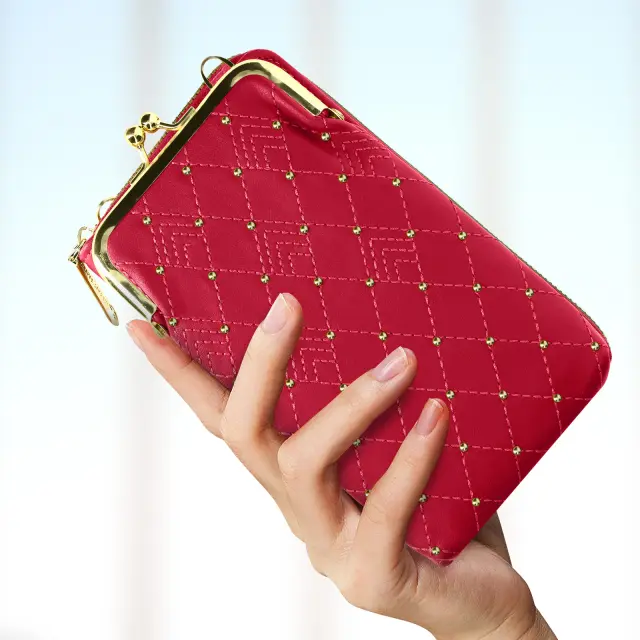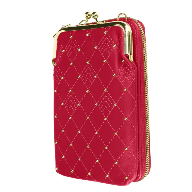 Torbica za naramnico za pametni telefon z diamantnim šivom, izvirna in elegantna. Ima vec predelkov za telefon in nujne stvari. Njegov odstranljiv in nastavljiv 130 cm trak omogoca enostaven transport in stil.