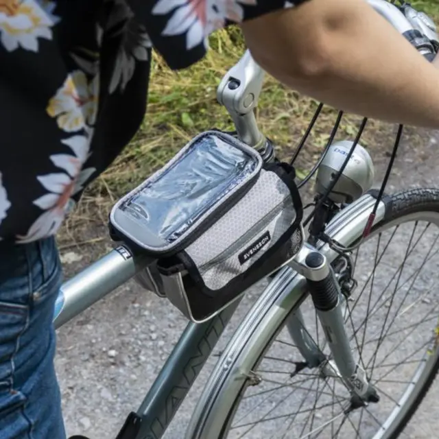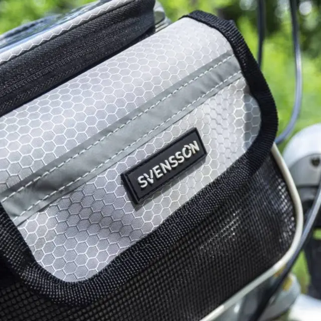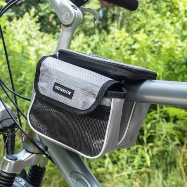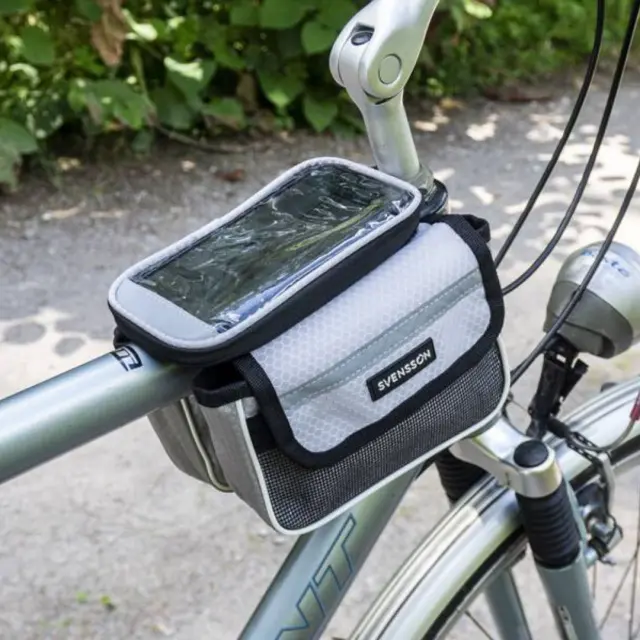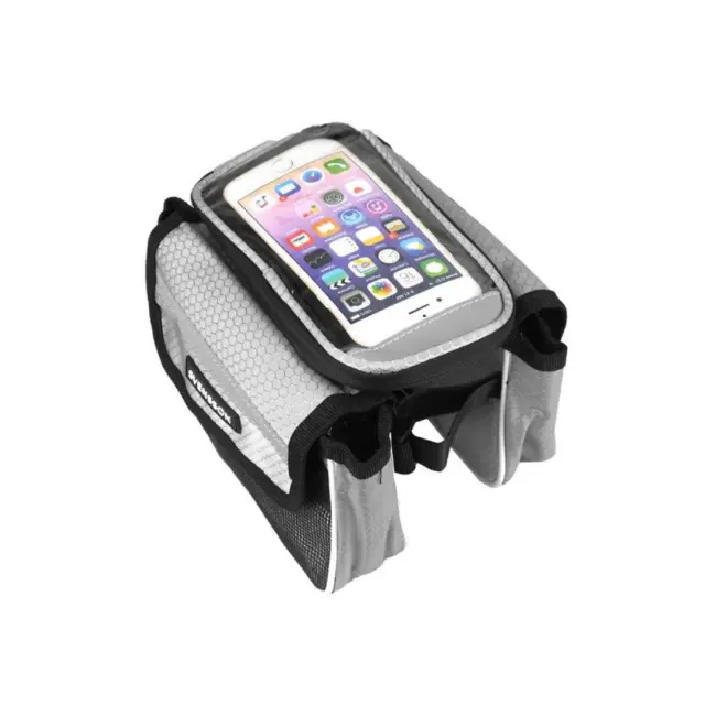 Kolesarska torba iz vodoodpornega materiala. Posebna oblika omogoča pritrditev torbe na okvir v bližini krmila kolesa, zaradi česar je priročen predal za shranjevanje in torbica za telefon hkrati. V zgornjem delu je prostor za telefon, ki se zapira z zadrgo. Etui je opremljen s prozornim okencem, ki omogoča uporabo telefona kot navigacijske naprave med potovanjem. Torba ima dva žepa, ki se zapirata na ježka, v katera lahko spravimo stvari, ki so potrebne za kolesarjenje. Torba je na okvir pritrjena s trakovi z močnimi ježki.