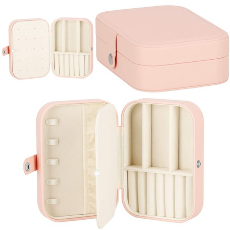 ''Torba za nakit iz eko usnja 16x11x5 cm, roza etui s predali''
