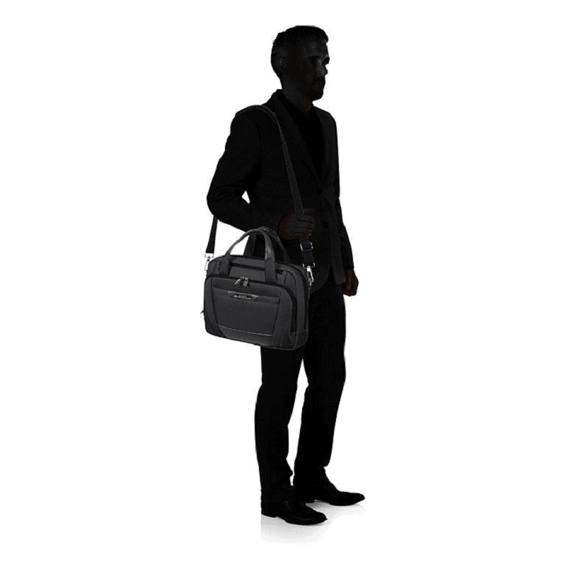 Najnovejša generacija najbolj priljubljene Samsonite poslovne kolekcija prinaša še več uporabnih funkcij za vse, ki se pogosto znajdete na poslovnih potovanjih. Z dodatnim razvojem in testiranjem materialov je Samsonite kolekcijo Pro-DLX 5 naredil še lažjo, premišljen dizajn pa je poskrbel za še boljšo notranjo organiziranost in boljšo uporabnost. Vse skupaj zaokrožuje prestižen videz in pozornost, ki jo Samsonite namenja vsem detajlom. Torba za prenosnik Pro-DLX5 je narejena iz izjemno močnega balističnega najlona, z oblazinjenim predelom za prenosni in tablični računalnik pa nudi odlično zaščito vašim elektronskim napravam. Sistem Easy Pass za enostavno prehajanje kablov med predelki vam omogoča, da polnite svoje elektronske naprave, ne da bi jih morali za to vzeti ven iz torbe, aktovka pa se ponaša tudi s posebnim žepom, namenjenim powerbanku, in žepom, ki nudi RFID zaščito vašim karticam.