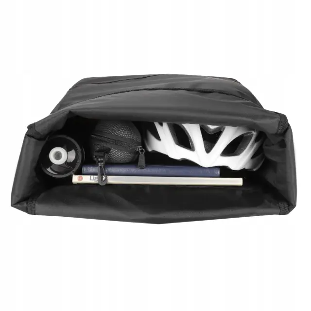 VELIKA KAPACITETA – torba ima velik predal s prostornino 15 l. Vanj lahko spravite prigrizke, pijačo in še marsikaj. Primeren tudi za prenosni računalnik in mape A4. Popolnoma primeren za mestne vožnje in kolesarska potovanja . Poleg tega ima torbica ob strani mrežast žep z gumo, npr. za bidon.