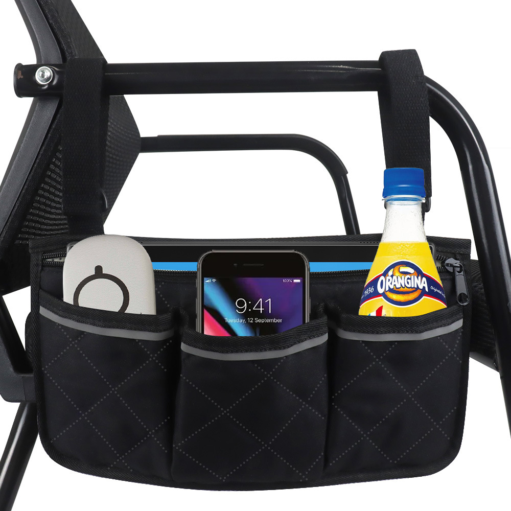 Večnamenska torba za invalidski voziček: zasnova z več žepi povečuje prilagodljivost in možnost organiziranja stvari. Popoln za prenašanje vsega, od očal, mobilnega telefona, zdravil in denarnice do pisal, prigrizkov in steklenic za pijačo.