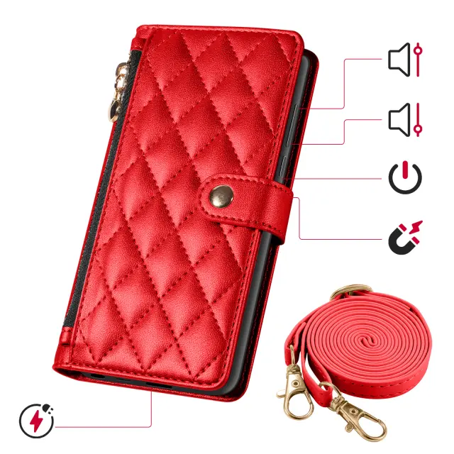Torbica čez ramo za Galaxy S26 Ultra z zadrganim žepom in video stojalom, Rdeča