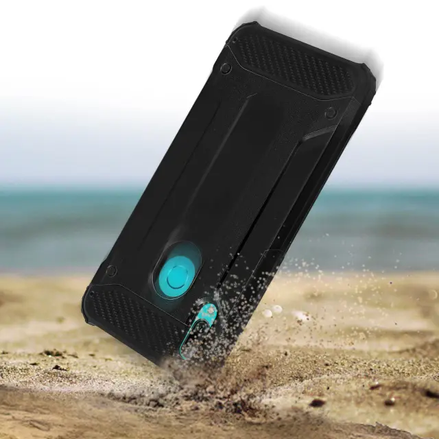 Ovitek iz dveh materialov, odporen na udarce, zasnovan za Huawei P Smart 2019, Honor 10 Lite. Izdelana iz silikonskega gela s polikarbonatnim okvirjem z učinkom karbona. Obroba odbijača za boljšo absorpcijo udarcev. Ultra odporna zaščita, ročaji padejo do 1,80 m.