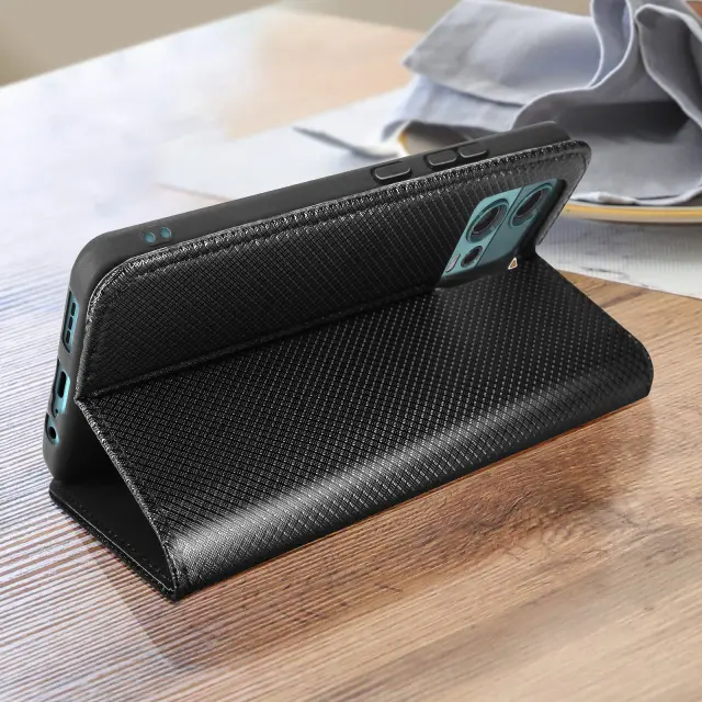 Torbica denarnica Motorola Moto G72 z magnetnim preklopom in držalom za kartice - crna