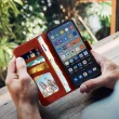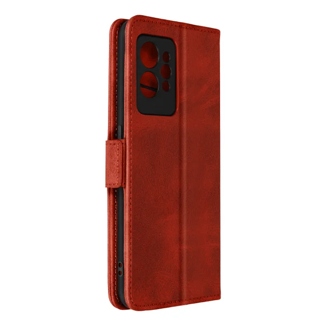 Torbica denarnica Realme GT 2 Pro, dvojni magnetni zavihek z držalom za kartice, rdece ekološko usnje