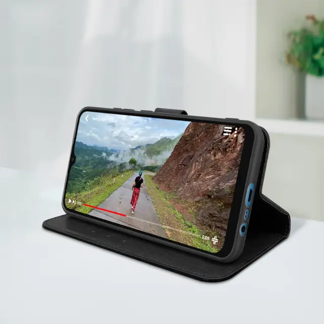 Torbica denarnica Realme C11 2021, z video držalom in magnetnim jezickom - crna