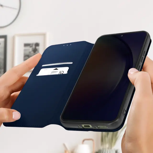 Ovitek za Samsung Galaxy A54 5G. Ta etui ima reže za kartice v magnetni preklopni vložku in trdno, prožno silikonsko ohišje. Deluje tudi kot vodoravna podpora za ogled vaših videoposnetkov.