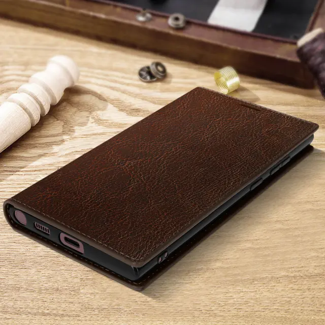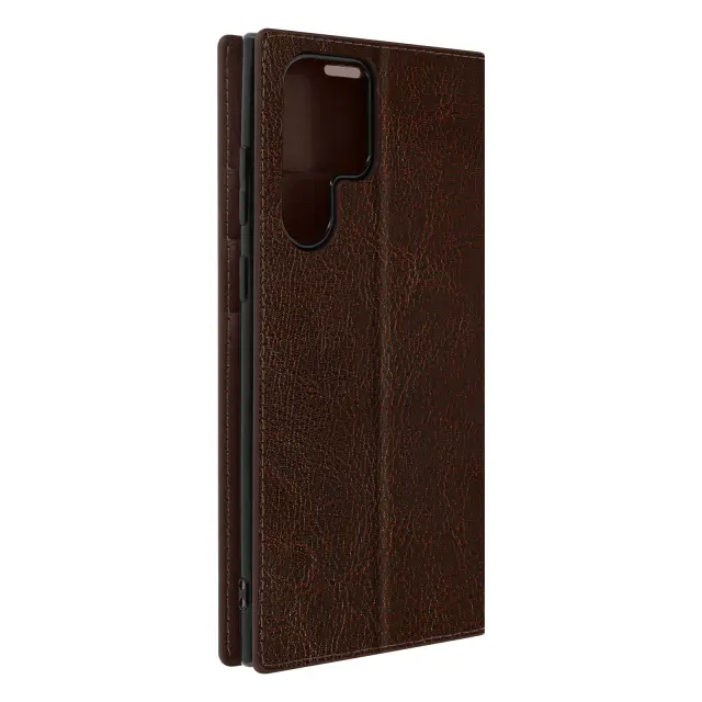 Ta ovitek za Galaxy S22 Ultra iz pravega rjavega usnja izboljša dizajn mobilnega telefona, hkrati pa zagotavlja njegovo zašcito. Izjemno prakticen pokrov zahvaljujoc modularnemu ventilu, ki deluje kot podpora za video. Vkljucuje predelke za kartice in bankovce.