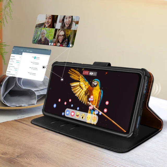 Torbica denarnica za pametni telefon 5,5 do 6'', umetno usnje in magnetni zavihek, serija Chesterfield - crna