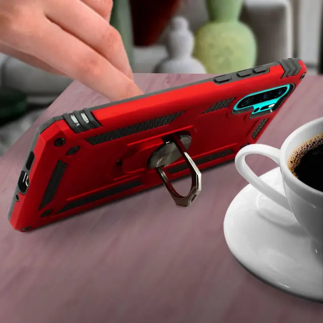 Torbica, odporna na udarce, s kovinskim držalom za obrocke - rdeca str. Huawei P30 Pro