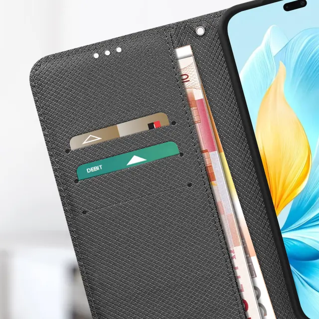 Torbica s preklopom za Honor 200 Lite Križni učinek s trakom, Črna