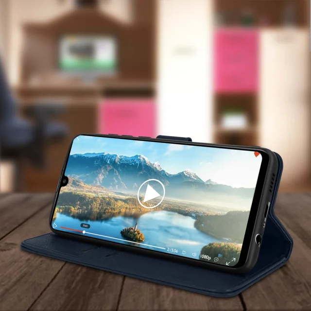 Vijolicno ohišje serije Chesterfield, posebej zasnovano za Huawei P smart 2020. Zašcita celotnega pametnega telefona pred praskami in udarci. Prevlecen z elegantnim umetnim usnjem za uspešno preobrazbo pametnega telefona. Magnetni zavihek drži kovcek zaprt za vecjo varnost.