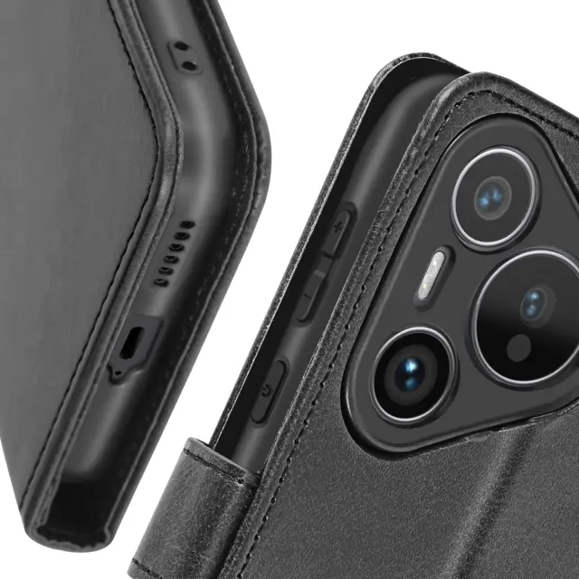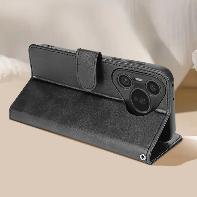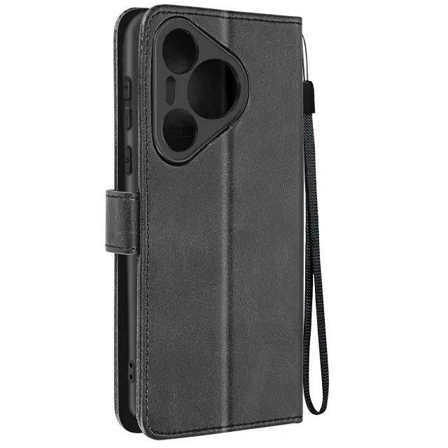Torbica s preklopom za Huawei Pura 70 Pro Denarnica s trakom za roko, Črna