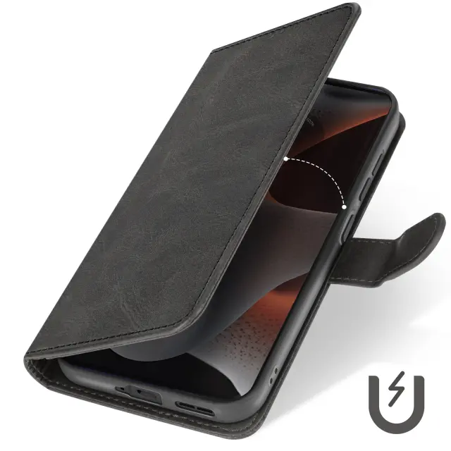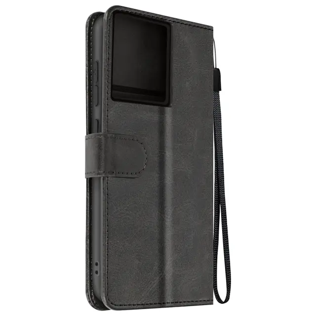 Torbica s preklopom za Motorola Edge 50 Pro Denarnica s trakom za roko, Črna